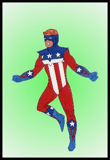 Joe Higgins was living his dream. On his father’s deathbed he pledged to always do good. His father had fallen in the line of duty for his country. Now Joe has the opportunity to carry out his father’s request. Joe Higgins, G-man extraordinary, becomes the Shield. Only the chief of the FBI knows the Shield's true identity! Joe's father was killed in the famous Black Tom explosion, set off by foreign spies during World War I to gain his secret chemical formula. From that time forward, Joe swears to devote his life to shielding the U.S. government and its people from any harm. Joe succeeds in securing an appointment as a G-man to carry out his avowed purpose. Because of the uniform he developed with the aid of his father's earlier experiments in body chemistry, he is called the Shield. This uniform of his own secret construction is not only bulletproof and flameproof, but gives him the power to perform extraordinary physical feats. Wearing his "shield," he has the speed of a bullet and the strength of Hercules. With these powerful forces he shields the U.S. government from all enemies. The four white stars on the field of blue signify what he has devoted his life to, truth, justice, patriotism, and courage! In 1941 Joe takes on a non-super powered partner, Dusty (see individual entry) to aid him in his endeavors. But in 1942 Joe loses his powers, and his suit becomes his sole power. Now the Shield and Dusty are just ordinary people in extraordinary circumstances. They fight memorable and horrible villains like the Strangler, the Fang, and the most fearsome of all, the Hun. After the war the Shield and Dusty fight the criminal foes of America until early 1948. The Shield has the distinction of being the first of many patriotic heroes and heroines to wear the red, white, and blue of America!  |