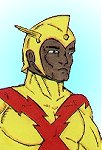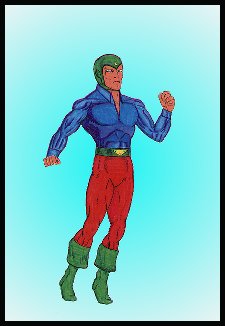 | Eons ago a highly advanced alien civilization flourished in what is now South America. These peace-loving people created an android named Manowar. They made it their gift to posterity, programming the android to become active in humankind's darkest hour of need. The android was placed inside a mountain, lying dormant until its time came. Manowar is awakened centuries later when a Nazi bombing raid razes his abode. Firing bolts of "knifelike electrons" from eye slits in his golden facemask, he destroys the Nazi raiders. Eventually, Manowar makes his way north and decides to adopt a more human-like appearance so he can mingle freely among mankind. He assumes the name of Dan Sanders and joins the FBI. Now calling himself the White Streak, the alien android fights the ills besetting America and the world. Using his electron vision he can create useful tools, such as ladders of fire to climb on. He also has x-ray vision, extreme durability, and super-strength, making him a feared and formidable foe of wrongdoers. |
