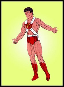 Around the time of World War I, high in the mountains of Tibet, the Council of Seven takes a young orphan under its wing and trains him to perfection. By the time he is 25, young John Aman has awesome strength and near-invulnerability. Each of the Council of Seven does his part in developing in the orphan all the qualities of one who would excel all in wisdom and courage. His friend, the young chemist Nika, endows him with the power to make himself disappear in a cloud of green vapor! John Aman promises the Council always to be good, kind, and generous. Then John passes a grueling set of challenges: a tug-of-war with an elephant, a duel with a deadly cobra using only his teeth, a knife flung through his throat, a test involving 1000 questions in the languages of all nations. Finally, Aman returns to America where he fights crime as the aptly named Amazing Man! But the one snag in his crime-fighting career is the Great Question (see individual entry) a rogue council member with great telepathic powers. The Great Question can take mental command of Amazing Man and have him do dastardly deeds until Amazing Man can break free of the Great Question's mental domination. In the first six months of his career, Amazing Man fights crime in a business suit, but soon he adopts a simple costume: a pair of shorts, a pair of boots and a harness across his chest with a shield with the letter "A" inside in the center. Amazing Man's rescued Zona Hendersen, a reporter for the New Orleans Reporter, from Garlock a supposedly magical modern-day Louisiana pirate from his castle hideout along the coast of New Orleans. Zona became Amazing Man's girlfriend and partner in understanding the criminal mind, something that Amazing Man’s training didn’t cover. In August 1941 Amazing Man make Zona’s kid brother his partner as Tommy the Amazing Boy (see individual entry), wearing a similar costume but lacking any superpowers. The two heroes battle criminals, thwart invasion attempts, and outwit the Great Question, but Aman always has time for a quick hug for his girlfriend. Both crime fighters ended their careers in 1942 for some unknown reason. Amazing Man was also called the Green Mist from time to time. |