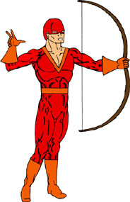 Only armed with a bow and arrow, the RED PANTHER fights on with his