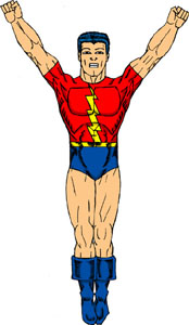 CAPTAIN FUTURE can fly, hurl energy bolts, and toss around automobiles.